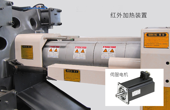 伺服驅(qū)動器在鎖模保壓冷卻等階段能輸出最大壓力但保持速度接近零速,因而功率消耗小,更節(jié)能 料筒采用納米遠紅外高效節(jié)能加熱裝置,改善了傳統(tǒng)加熱圈電熱轉(zhuǎn)換效率低、熱傳導率低、表面溫度高“兩低一高”缺點,比傳統(tǒng)加熱圈節(jié)能30%-40%